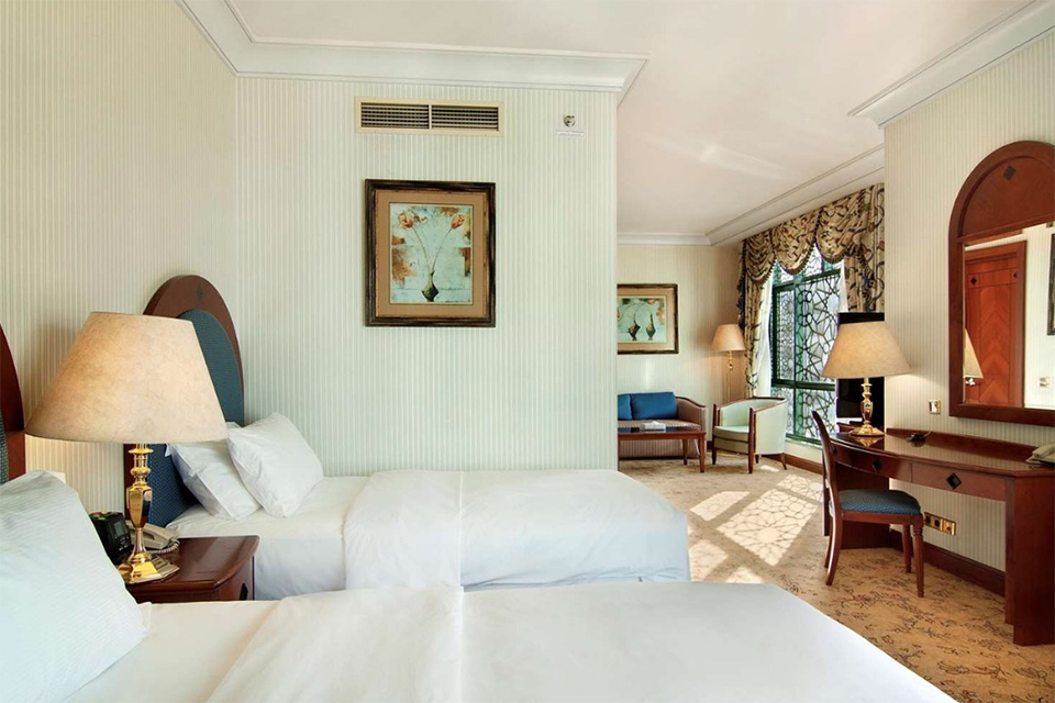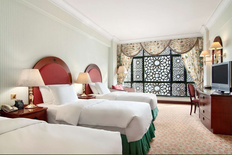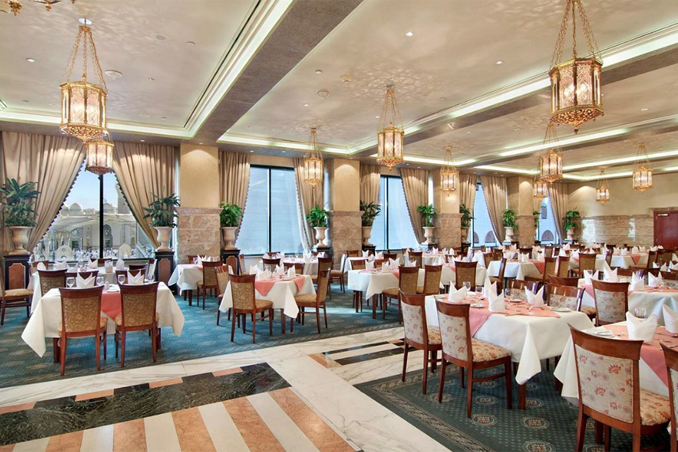 Guests can enjoy a meal of traditional Arabian delicacies in the hotel’s Restaurant while admiring the view of the Holy Mosque.